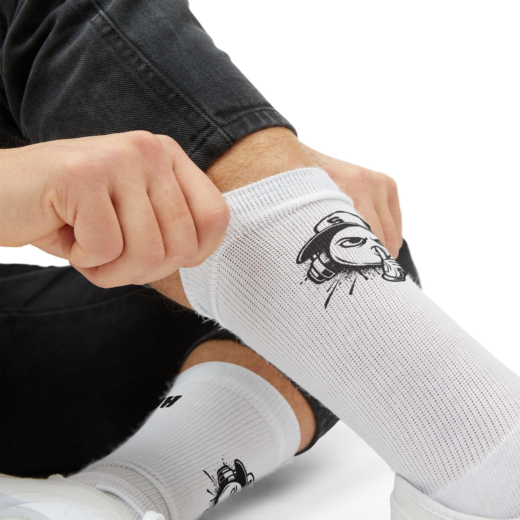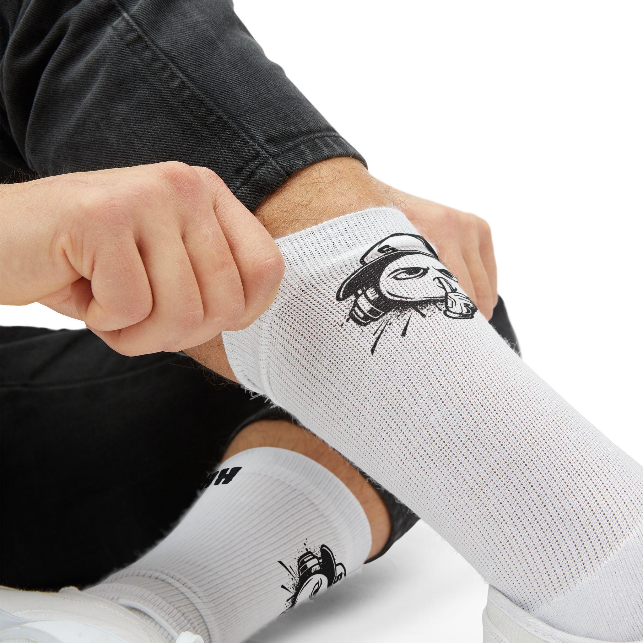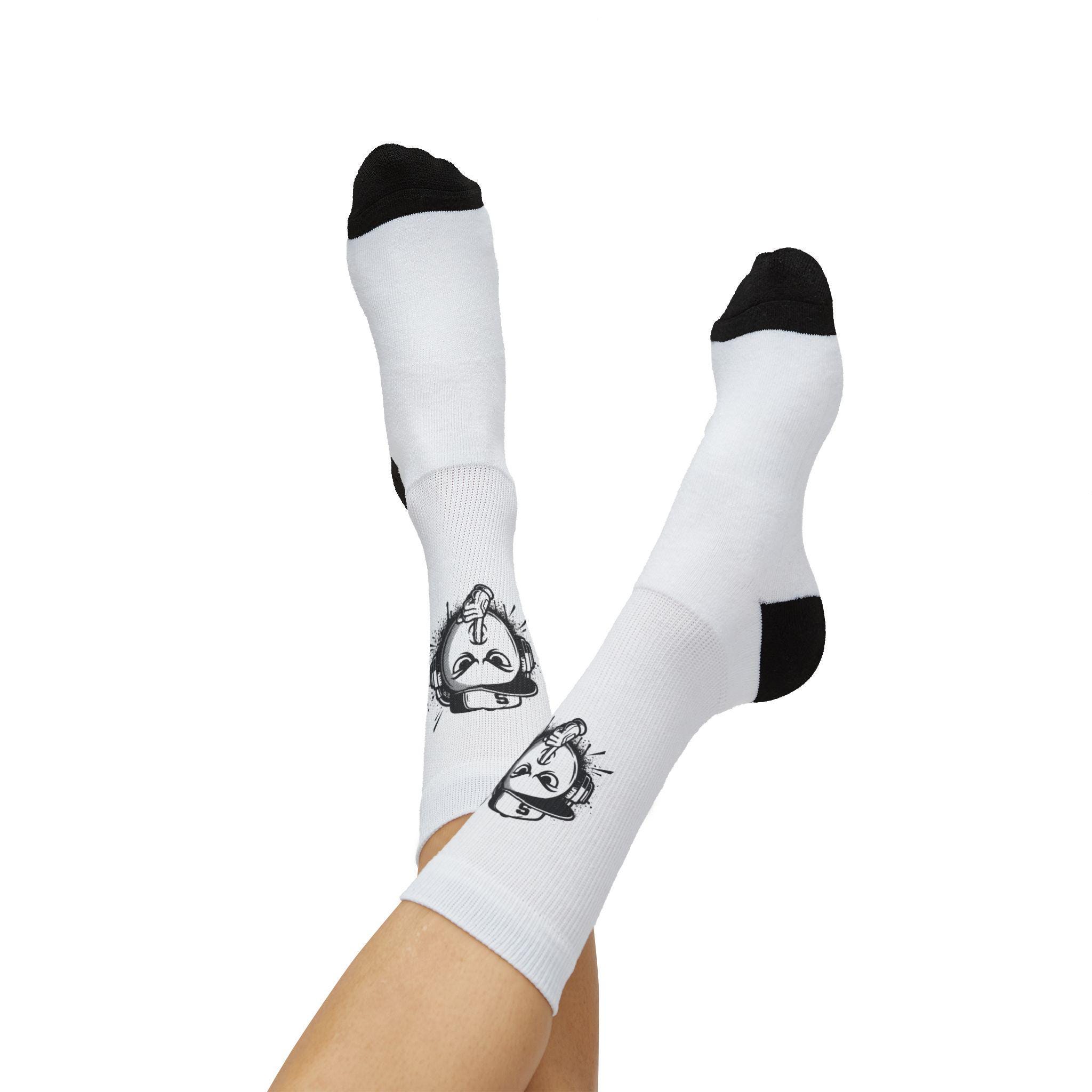 - All-over sublimation print covering the entire sock surface