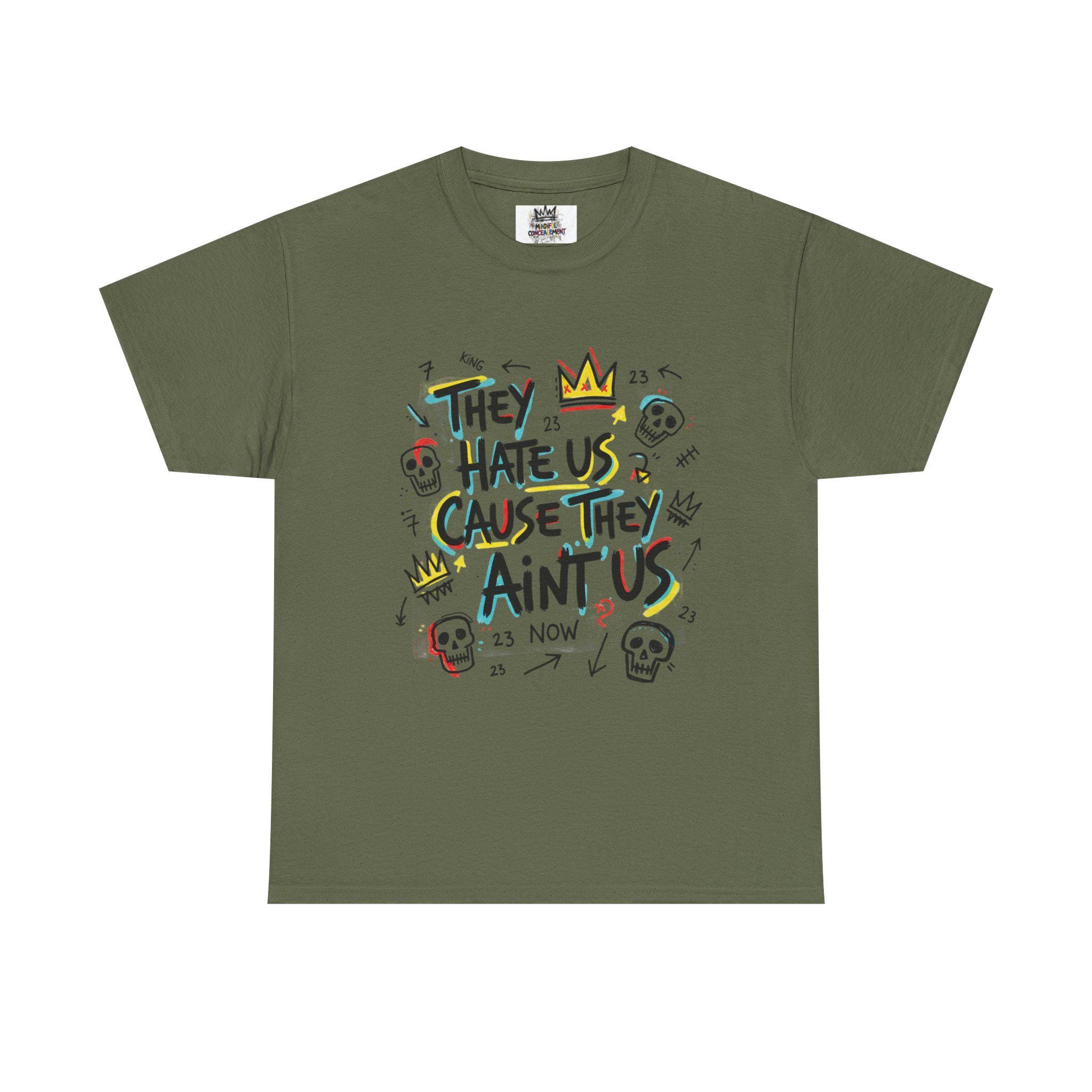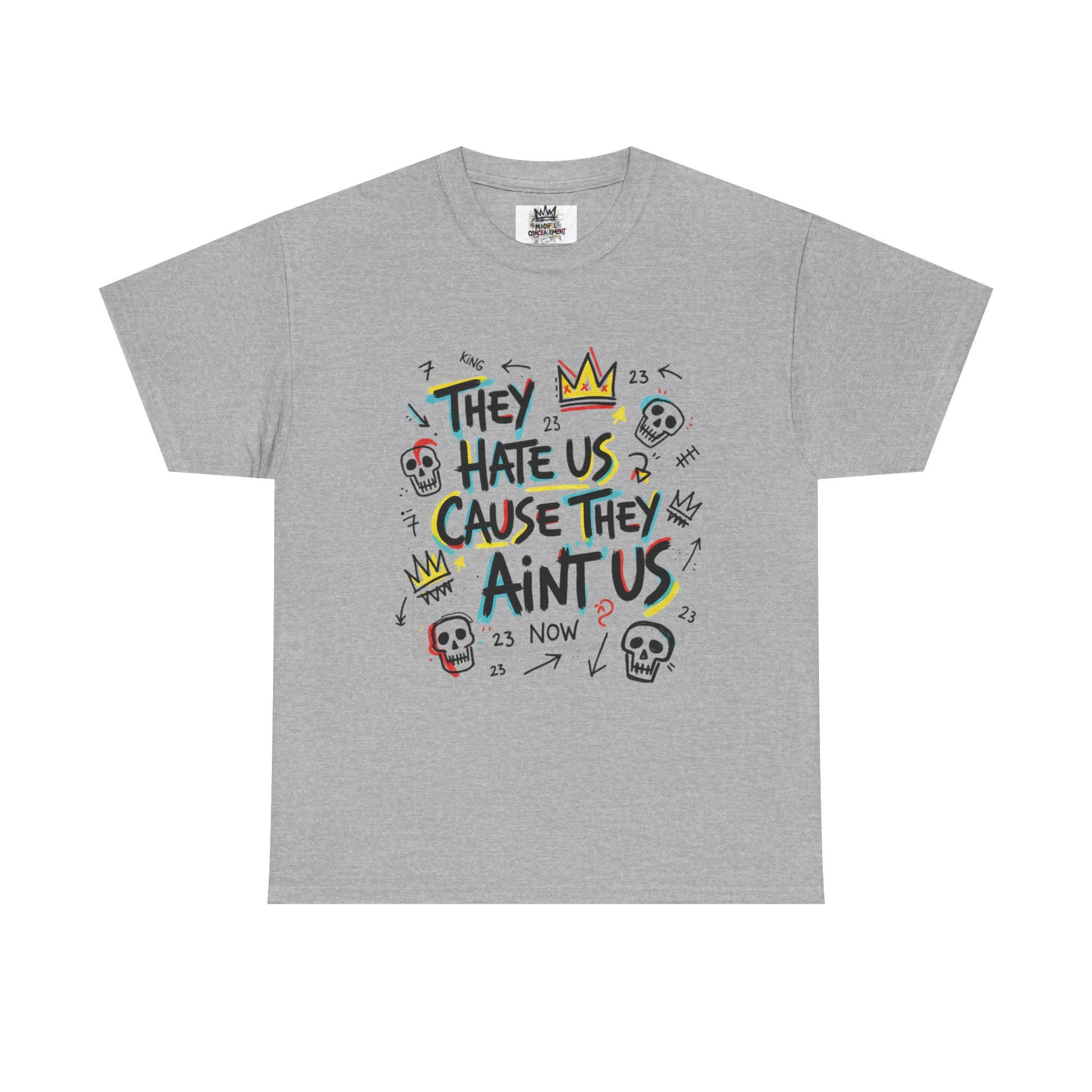 They Hate Us Cause They Ain't Us T-Shirt | Skull Crown Handlettered Design